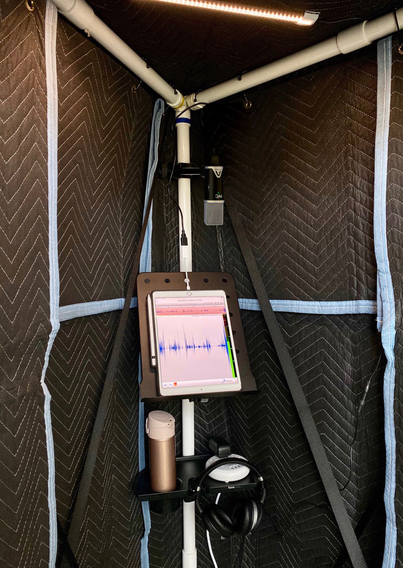 “Can I MacGyver a pillow fort booth in my hotel room with those extra pillows and the ironing board?” “Will the recording quality sound ANYTHING like I’ve been delivering week after week from home?”